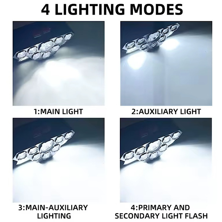 دارای : چهار حالت نوردهی لامپ متمرکز روشن، 20 لامپ کناری روشن، حالت قوی 28 نوری، حالت چشمکزن اضطراری